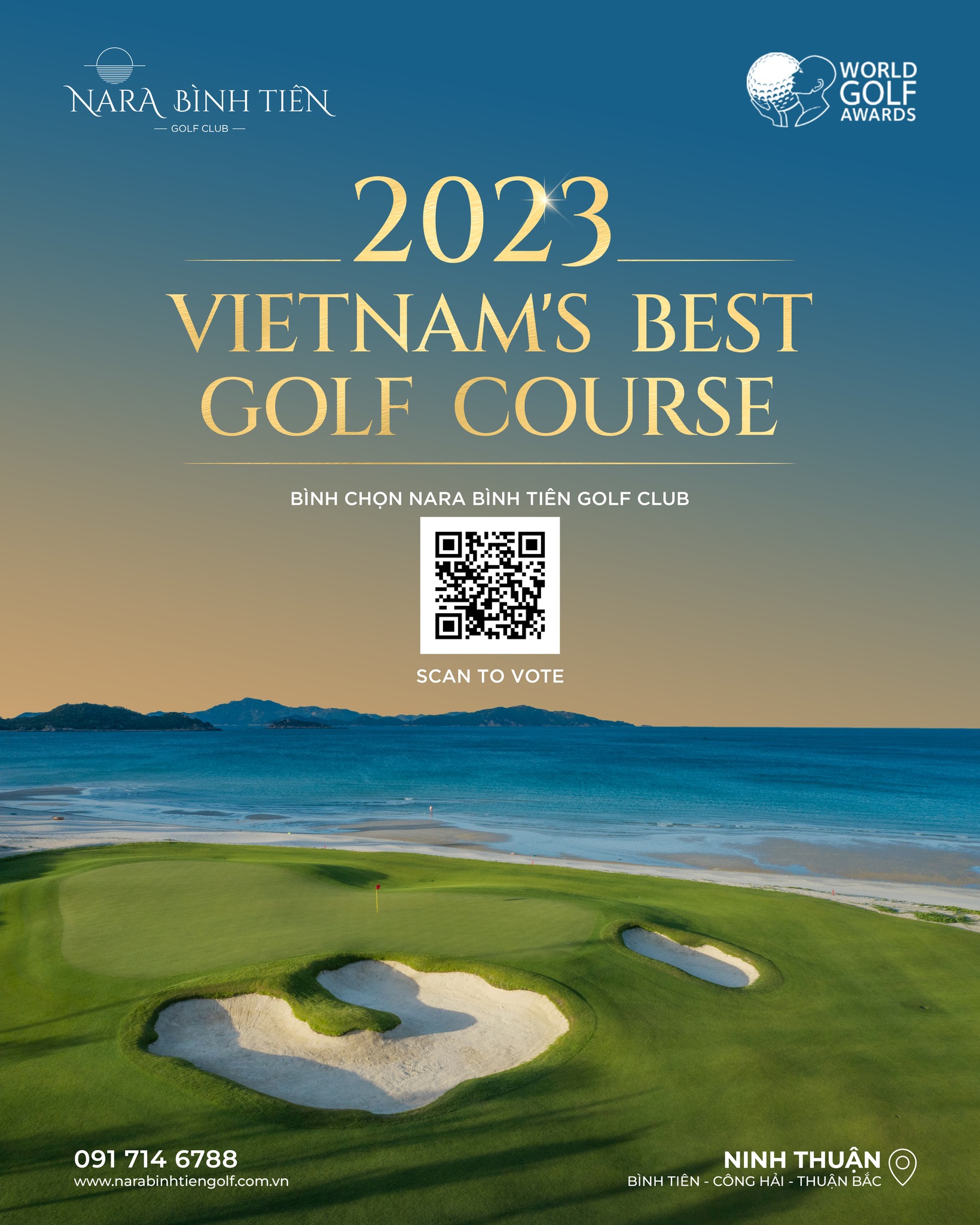 Sân golf 18 hố ven biển độc đáo ở tỉnh Ninh Thuận, được thiết kế bởi 2 kiến trúc sư Kevin Ramsey và David Dale thuộc Golfplan - đơn vị nổi tiếng thế giới từng thiết kế các sân golf tiêu chuẩn quốc tế. Bên cạnh đó, Nara Bình Tiên Golf Club còn sở hữu vị trí địa lý đắc địa khi có tầm nhìn tự nhiên bao quát, hùng vĩ với: sườn núi thoải, rặng rừng xanh nằm trong khu dự trữ sinh quyển Núi Chúa phía tây và hướng nhìn vô tận ra Biển Đông.