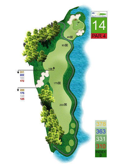 Cách bố trí lý tưởng dừa thành hàng dọc theo fairway trên rough tạo ra một bầu không khí tuyệt vời của khu du lịch ven biển. Những bẫy cát được tạo hình mang đầy tính nghệ thuật cùng với các dòng nước tự nhiên uốn mình theo dáng cong của khu du resort mang lại một sự thanh bình, yên ả mà người chơi gôn nào cũng dễ đem lòng yêu mến.