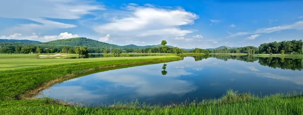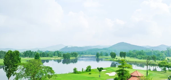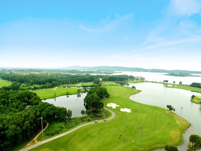 **Cảnh quan hồ nước:** Sân golf Đại Lải khai thác tối đa vẻ đẹp của **Hồ Đại Lải** và rừng thông, tạo nên một không gian chơi golf trong lành, mát mẻ.