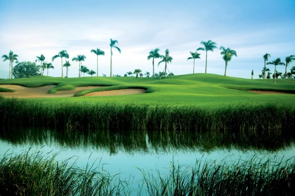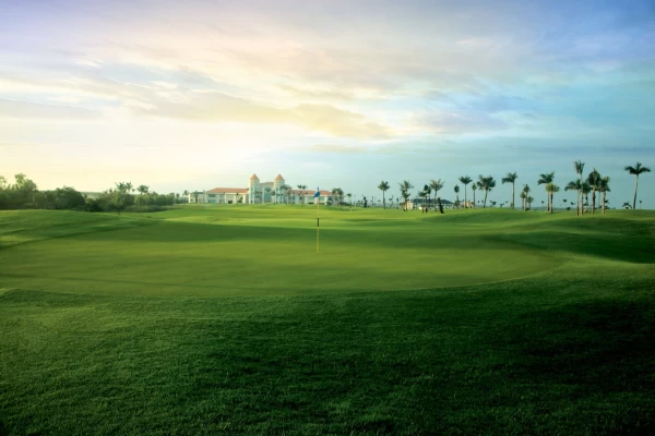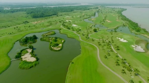 **Đặc điểm nổi bật: Sân được thiết kế theo phong cách **Out – Back Layout** với 2 khu vực chính, tận dụng tối đa cảnh quan sông nước và địa hình tự nhiên của đảo: