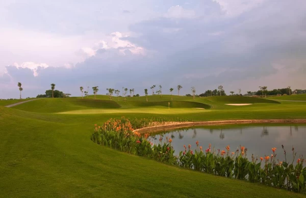 **Quy mô:** **27 Hố** tiêu chuẩn quốc tế (Par 72/36), được thiết kế bởi **P+G Development**.