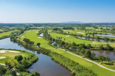 **Sân Hồ (Lake Course - 18 hố):** Phong cách nghỉ dưỡng, đường Fairway lượn sóng, hồ nước đan xen, cảnh quan thư thái.